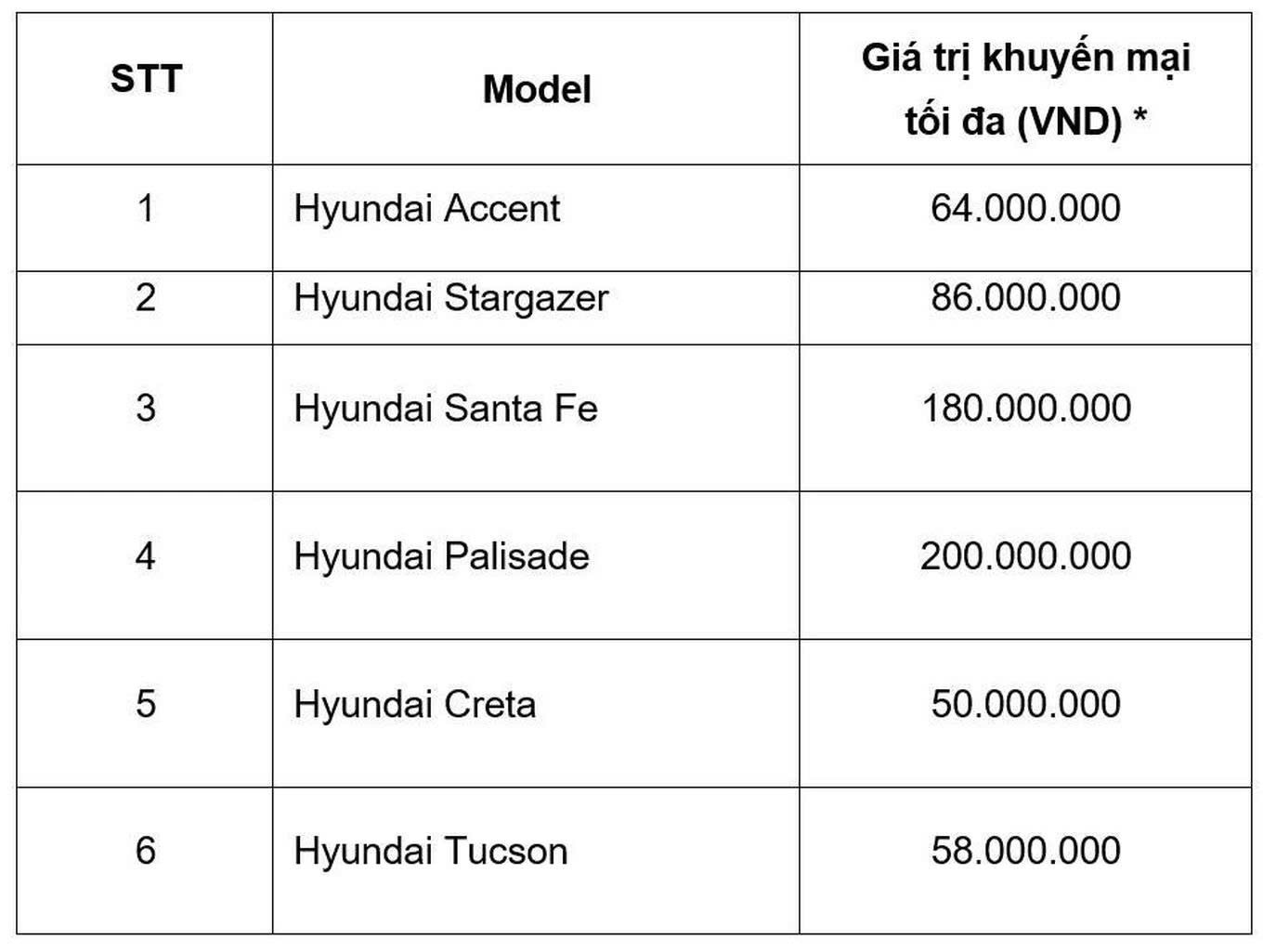 Chương trình được áp dụng tại các đại lý ủy quyền Hyundai trên toàn quốc với các hợp đồng mua bán được giao dịch thành công trong tháng.